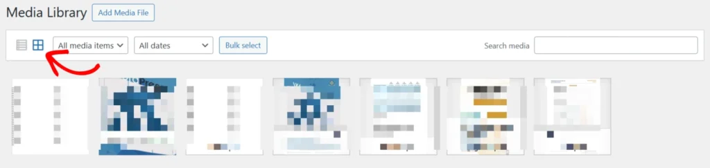To access the dedicated page for your PDF, start by navigating to WordPress Dashboard > Media > Library. Ensure you are using the Grid view by clicking the grid icon near the top of the page for the necessary links to be accessible.